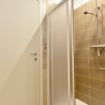 Il bagno è dotato di un box doccia molto ampio e confortevole, lavabo, wc e bidet.