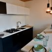 L'appartamento è composto da 1 camera da letto; un bagno con una bella doccia e una lavatrice; soggiorno con angolo cottura e terrazzo panoramico. La cucina è completamente attrezzata e comprende una lavastoviglie.