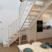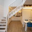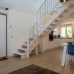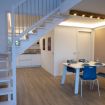 Una scala comoda conduce al soppalco, dove un letto matrimoniale accogliente offre una vista panoramica attraverso le finestre che si affacciano sul lago. Un secondo bagno aggiunge un tocco di lusso e praticità. La TV sul soppalco permette agli ospiti di godersi i loro programmi preferiti comodamente dal letto.